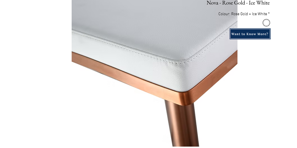 This is a modern and elegant bar stool with a sleek, minimalist profile. It features a backless seat upholstered in... This is a modern and elegant bar stool with a sleek, minimalist profile. It features a backless seat upholstered in crisp white leather or faux leather, offering a clean and contemporary look. The stool's standout element is its warm rose gold or copper-finished pedestal base, which adds a sophisticated and stylish contrast to the white seat. A square metal base ensures stability, while a matching rectangular footrest provides comfort. The stool also includes a discreet lever beneath the seat for height adjustment. Perfect for chic kitchens, modern bars, or upscale dining spaces, this stool balances luxury and simplicity beautifully. View more