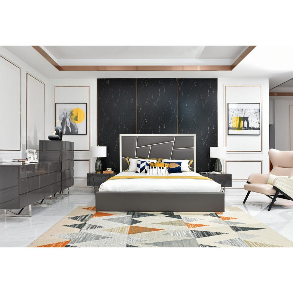 The Groundhouse Queen Bed from Furniture Line will make a great addition to your bedroom. It features a padded headboard,... The Groundhouse Queen Bed from Furniture Line will make a great addition to your bedroom. It features a padded headboard, chrome finished base and is upholstered in grey. View more