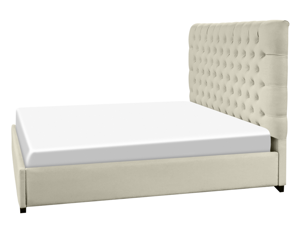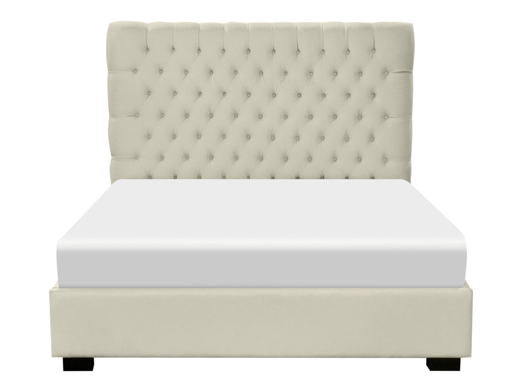 This bed features a tall, sophisticated headboard adorned with deep diamond tufting, creating a plush and elegant look. The vertical... This bed features a tall, sophisticated headboard adorned with deep diamond tufting, creating a plush and elegant look. The vertical design of the headboard gives the bed a sense of height and grandeur, while the smooth, soft upholstery in a neutral tone ensures it blends effortlessly with various decor styles. The low-profile base is fully upholstered to match, offering a cohesive and refined finish. Customization Available:You can customize this bed to perfectly match your taste and space. Select from a wide range of fabric types, colors, sizes, and tufting styles to create a look that’s uniquely yours. Whether you’re aiming for timeless elegance or a modern edge, this bed can be tailored to bring your vision to life. View more