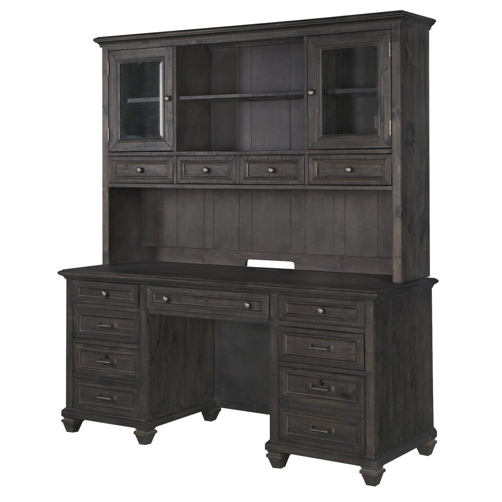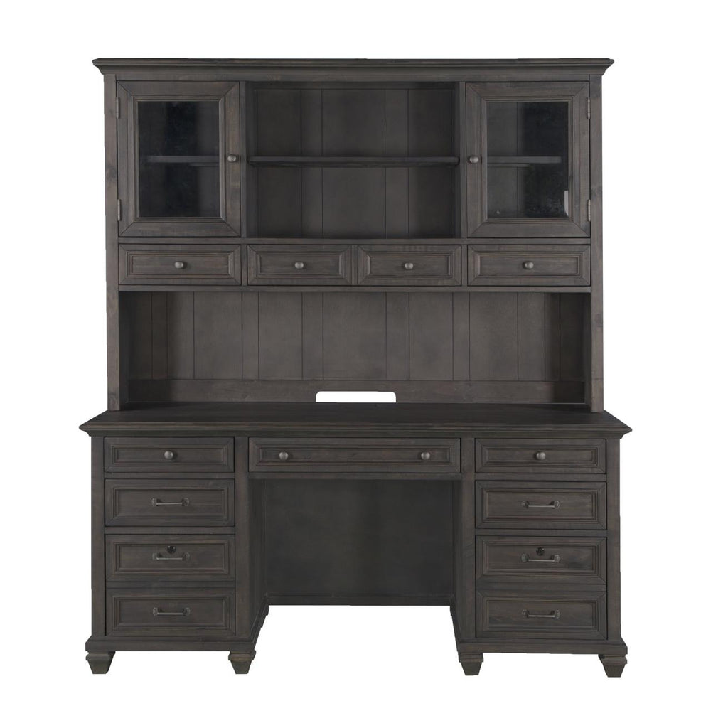 • Hutch features 3 felt lined drawers, 1 center adjustable wood shelf and 2 wood framed tempered glass doors that open to reveal an additional wood framed tempered glass shelf shelf behind each door.