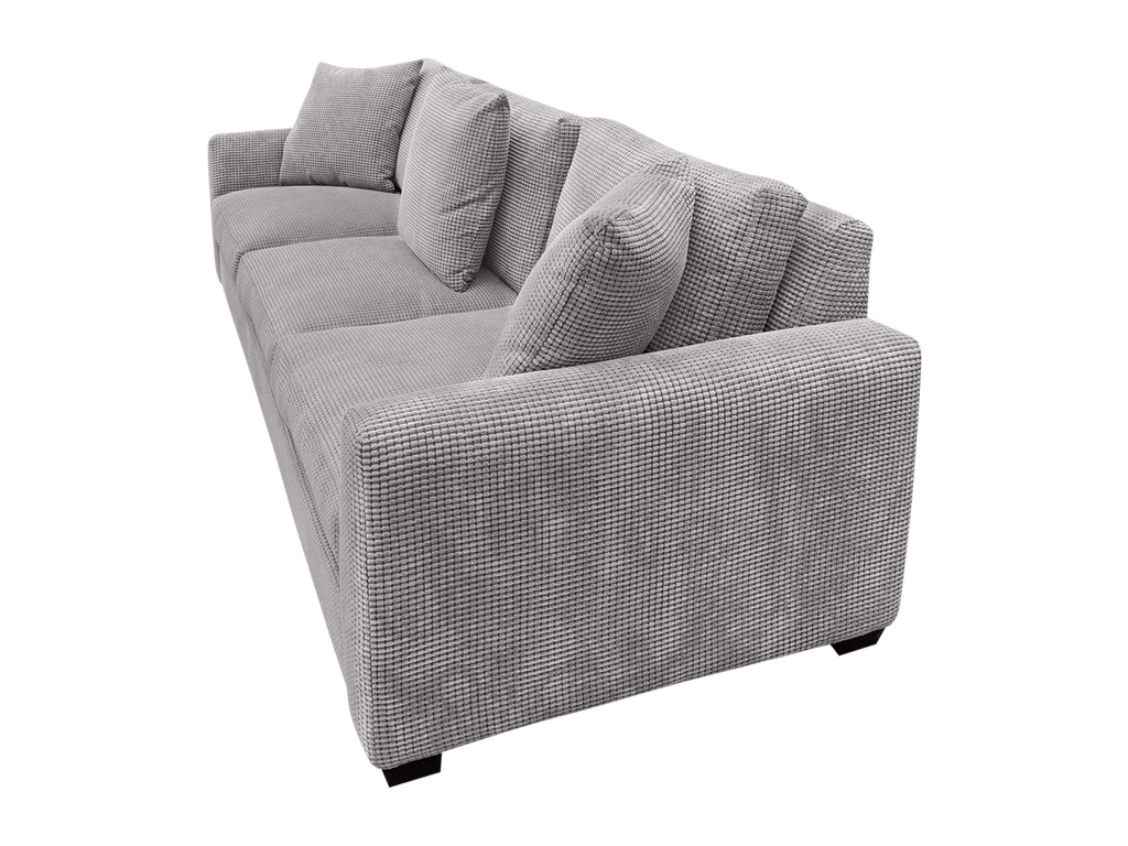 This is a sleek, modern sofa featuring a stylish checkered fabric pattern. It offers comfortable back and seat cushions, perfect... This is a sleek, modern sofa featuring a stylish checkered fabric pattern. It offers comfortable back and seat cushions, perfect for both relaxation and style in any living space. The design includes four throw pillows for added comfort and a contemporary look. Its clean lines and neutral color make it versatile, fitting seamlessly into a variety of decor styles. Additionally, we offer customization options, allowing you to choose from a variety of fabrics, colors, and sizes to match your unique taste and home decor preferences.  View more