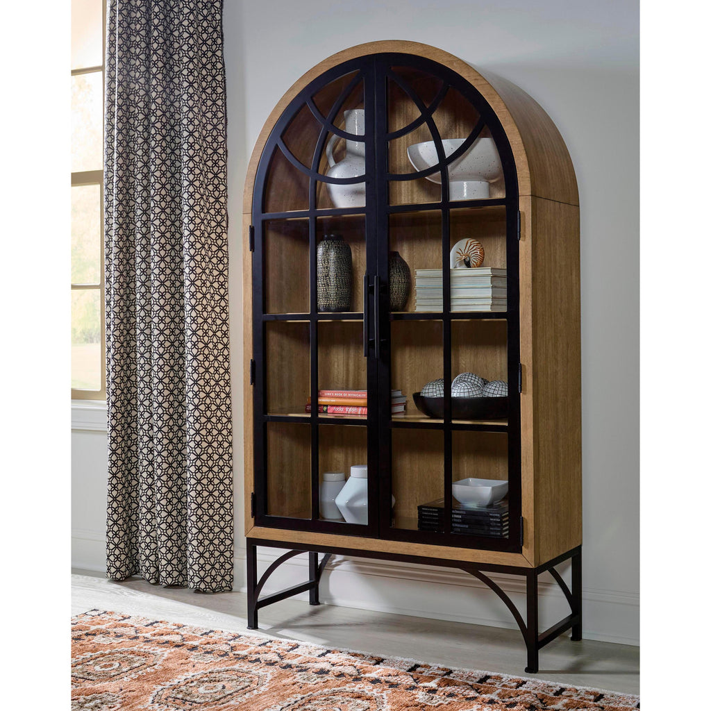 Store in style with this accent cabinet. Dressed in versatile natural brown and black finishes, it seamlessly suits spaces from... Store in style with this accent cabinet. Dressed in versatile natural brown and black finishes, it seamlessly suits spaces from casual to modern. An arched profile elevates the look and feel. Whether it's used to display your favorite dishware or as a handsome makeshift pantry in small spaces, this cabinet makes a chic impression. View more