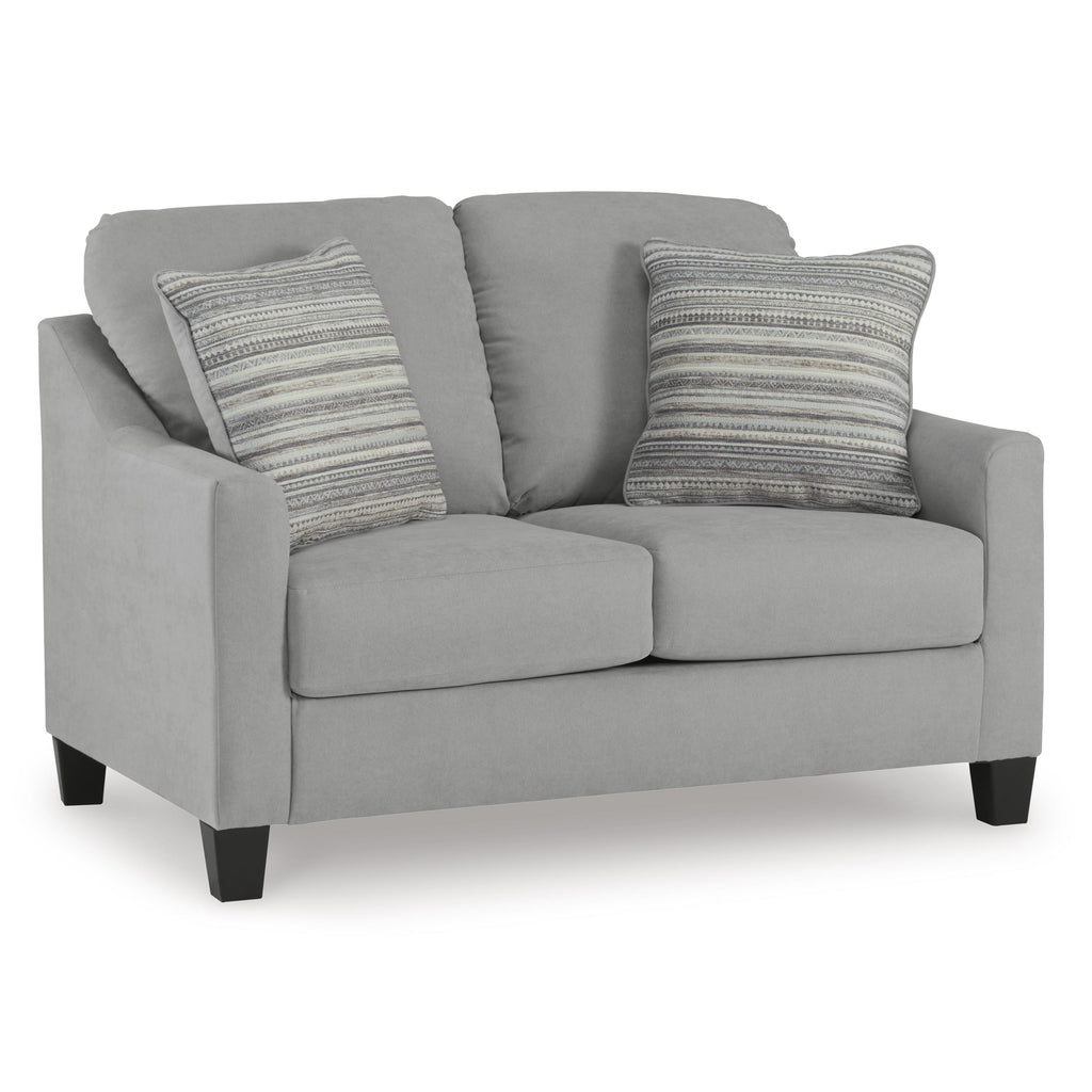 Simply chic comfort. This sofa and loveseat with matching chair and ottoman set’s versatile character is instantly at home where... Simply chic comfort. This sofa and loveseat with matching chair and ottoman set’s versatile character is instantly at home where you are, whether your space is casual or contemporary. With the look of suede velvet, you get the ultra-clean, tailored look you love. How’s that for refined relaxation? View more
