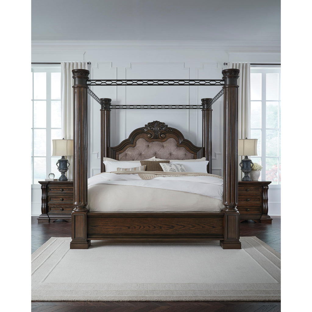 Dreams of lavish, luxurious living are within reach with this California king canopy bed. Recalling a classic sense of refinement,... Dreams of lavish, luxurious living are within reach with this California king canopy bed. Recalling a classic sense of refinement, its grand mansion-style posts make a beautifully bold statement. Ornate sculptural details on the headboard and posts eloquently add an air of opulence from head to toe. The look is timeless. The feel? Right at home. View more