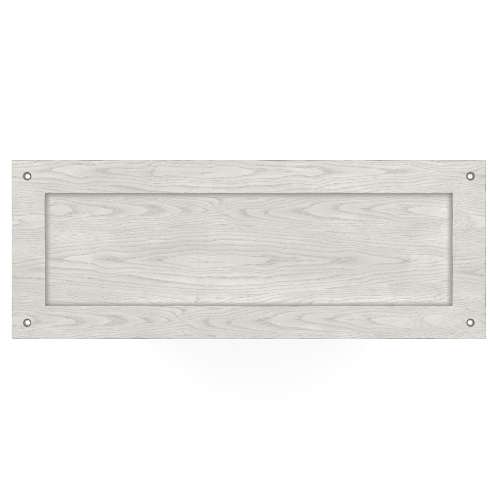 • Antiqued white finish with wood grain texture