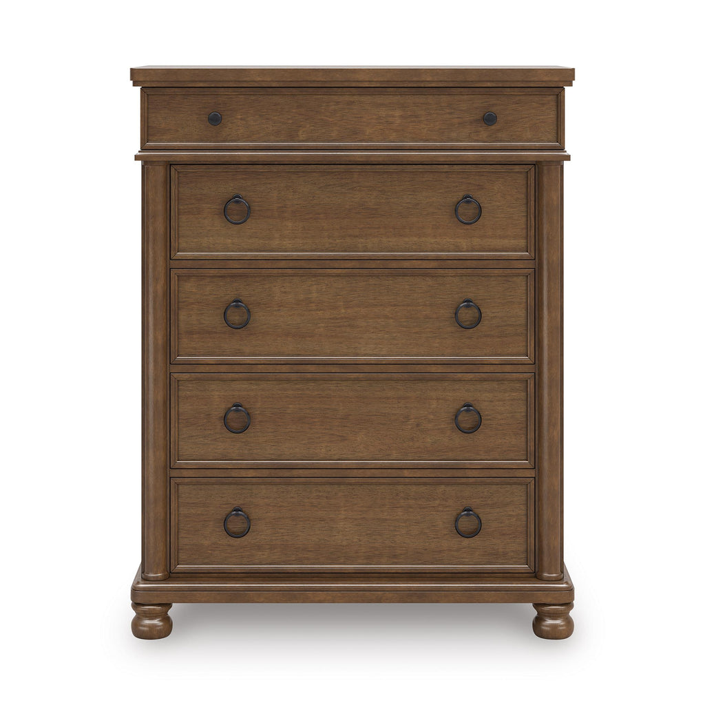 • 5 smooth-gliding drawers with fully finished interiors, French/English dovetail construction and heavy-duty ball-bearing side glides