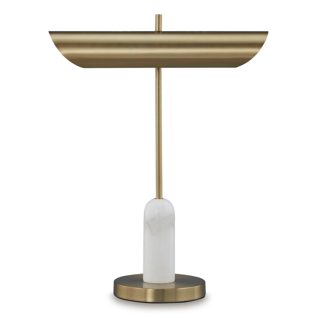 • Made of white marble and metal with a metal cylindrical shade