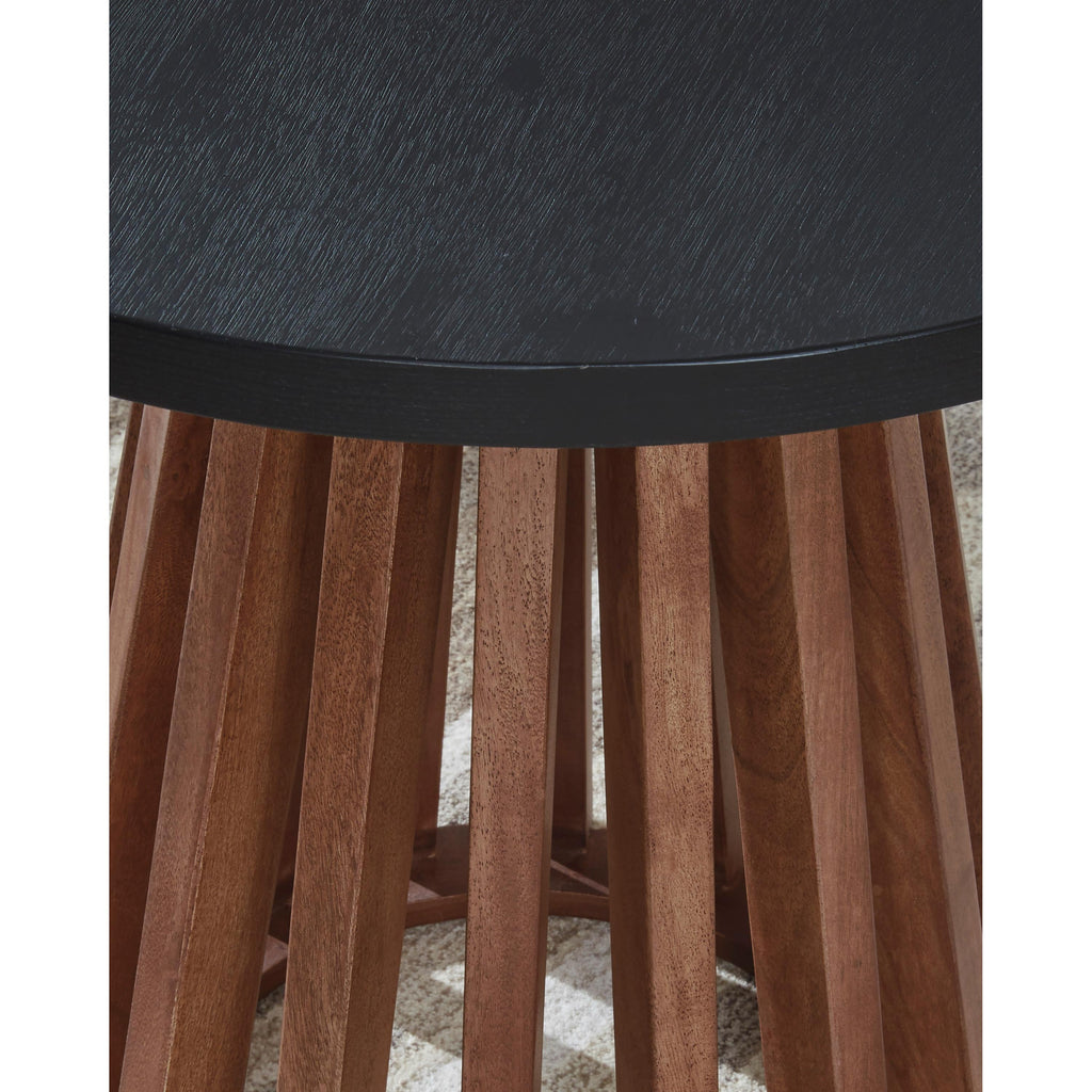 • Two-tone finish (medium warm brown wood tone and matte black)