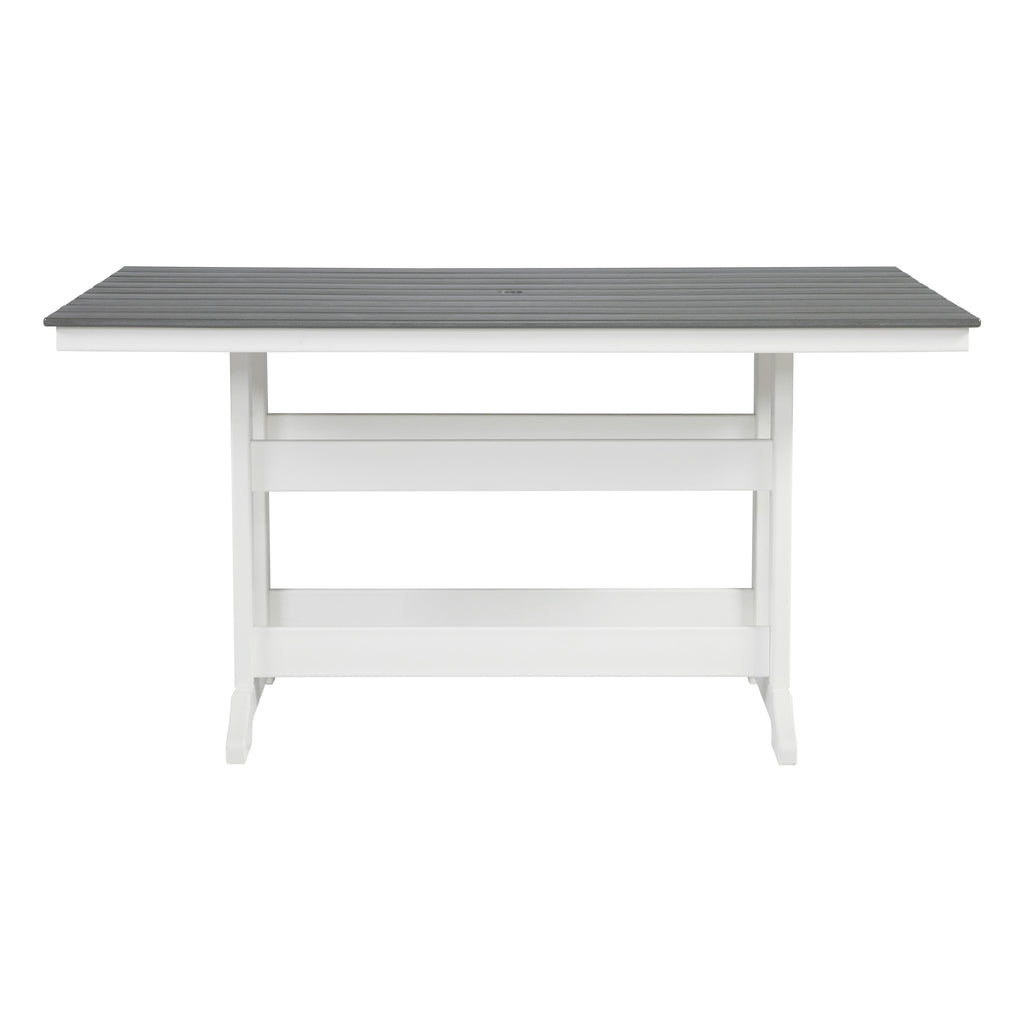 Gather friends and neighbors on the back deck or poolside to enjoy good times and make happy memories. Designed for... Gather friends and neighbors on the back deck or poolside to enjoy good times and make happy memories. Designed for easy-breezy living, this two-tone counter height outdoor dining table is made of durable MEGA-TUFF® HDPE material to withstand harsh weather. The gray and white table is made with stainless steel hardware and aluminum supports for extra strength. Raise a glass and make a toast to your comfortable outdoor lifestyle. View more