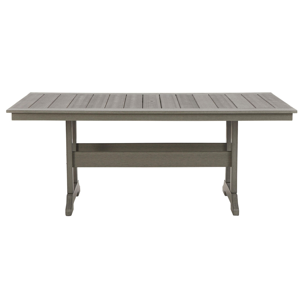 It’s the dawn of a new day for gray. Embrace the style trend with this outdoor dining table. Crafted of... It’s the dawn of a new day for gray. Embrace the style trend with this outdoor dining table. Crafted of HDPE material that combines the exceptional durability and weather resistance you need with the “wood look” you love, the rectangular table takes alfresco living to a whole new level. Its slatted top infuses a plank-style, farmhouse-inspired touch that naturally sheds rainwater. View more