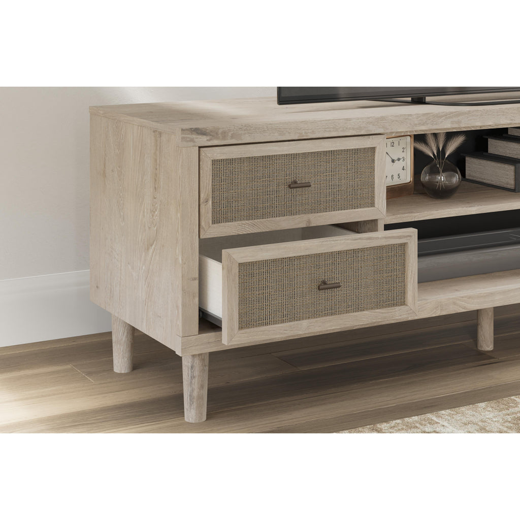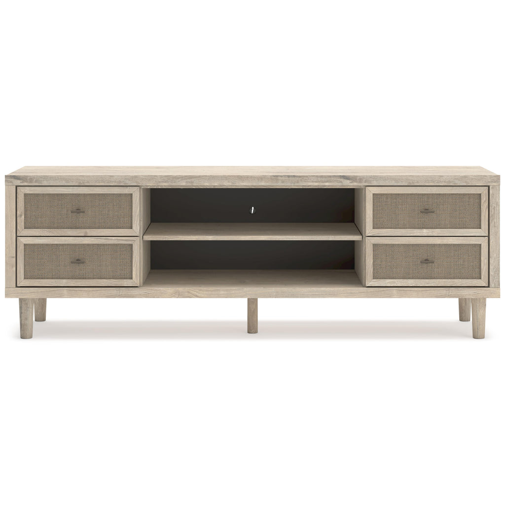 • Framed drawer fronts with replicated beige cane finish