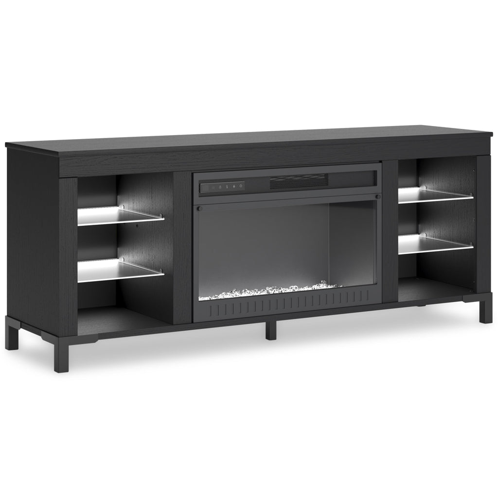 • Fireplace insert and shelves feature color and brightness controlled LED lighting